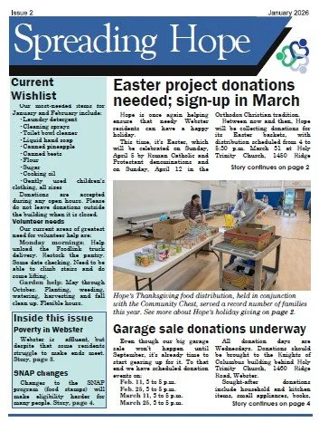 Spreading Hope, the newsletter of Webster Hope, is published four times per year.